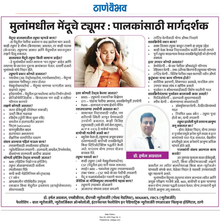 Dr. Harshal Agrawal is considered one of the best pediatric neurosurgeons in Mumbai & Thane, with specialized expertise in treating complex brain and spinal conditions in children.